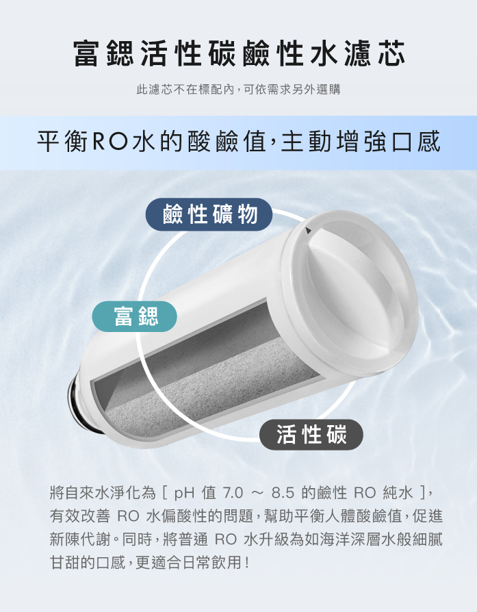 ⬧獨家口感升級設計,可加購前置濾芯改善淨水口感。